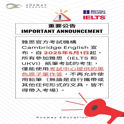 IELTS考生注意❗ 2025.05.01 起,雅思紙筆考試,僅能使用考試中心所提供的黑色原子筆作答! ✏️